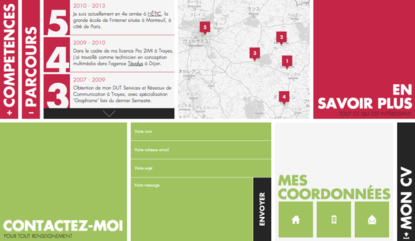一風変わったコンタクトフォームです。キャプチャーにある「DEAR DEUX HUIT HUIT」という文字がタイピングしているように出てきてその後にメッセージを記入します。アイディアも斬新でデザインも素敵。ちょっと趣旨は変わりますが一番のお気に入りです。