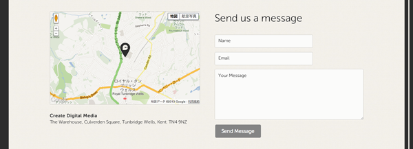 マップ等のコンテンツとうまく並べ、配置しているデザイン。サブミットボタンの質感もすごく良いです。