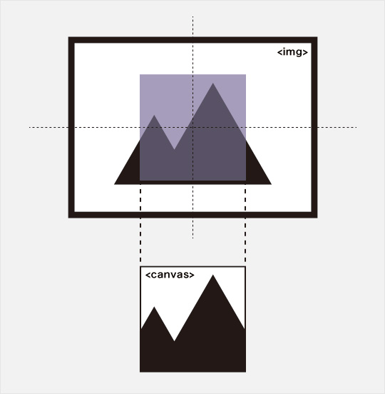 また今回の例ではctx.drawImage~~の部分で画像の切り抜き + キャンバスへの描写を行っています。切り抜きの範囲は画像のセンターから算出していますので、画像の中央からキャンバスサイズに切り抜きが実行描写されるようになっております。jQueryも一部使用していますので事前読み込みはお忘れなく。