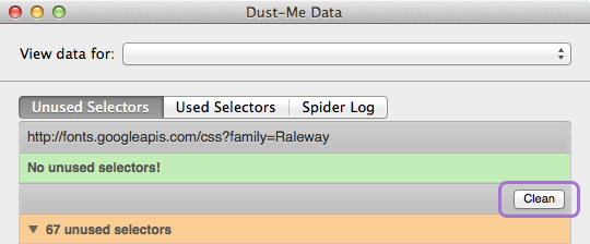 少し待つと使用していないセレクターが洗い出されますので問題無ければCleanします。
