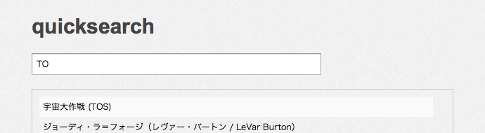 どうもこんばんは。今日はとても便利なプラグインの紹介です。【テーブル検索が簡単に実装できるQuicksearchの使い方】Jquery日本語マニュアルさまでも実装してる簡易検索プラグインです。諸処活用できそうなので改めてここにまとめておきます。