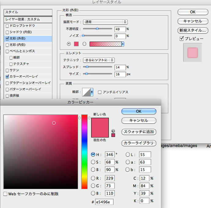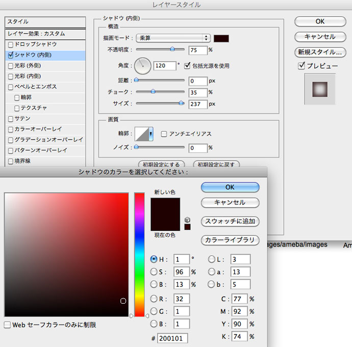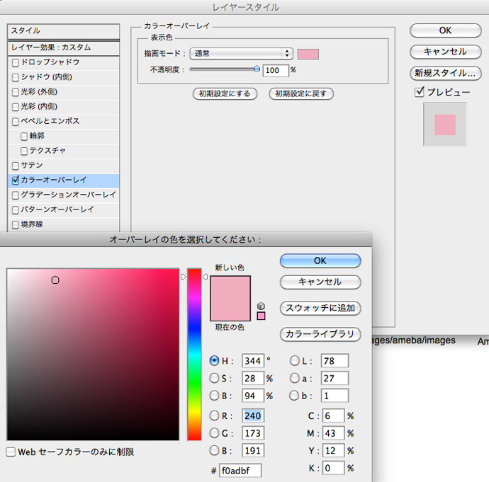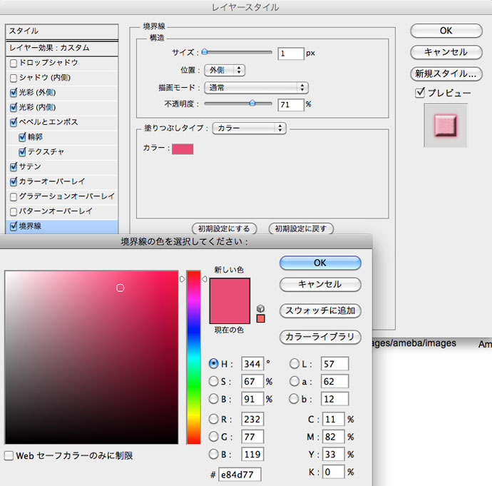 backgroundレイヤーへのレイヤースタイル