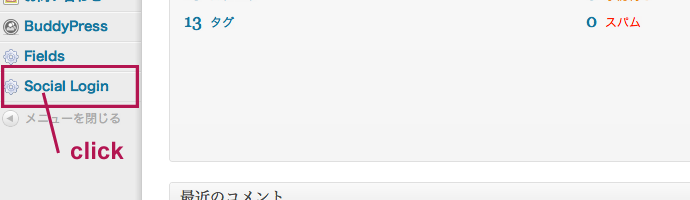 ダウンロード後、管理画面左メニューに【Social Login】の項目が追加されます