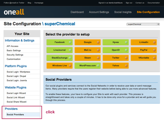 STEP2.OneAllでサイト登録